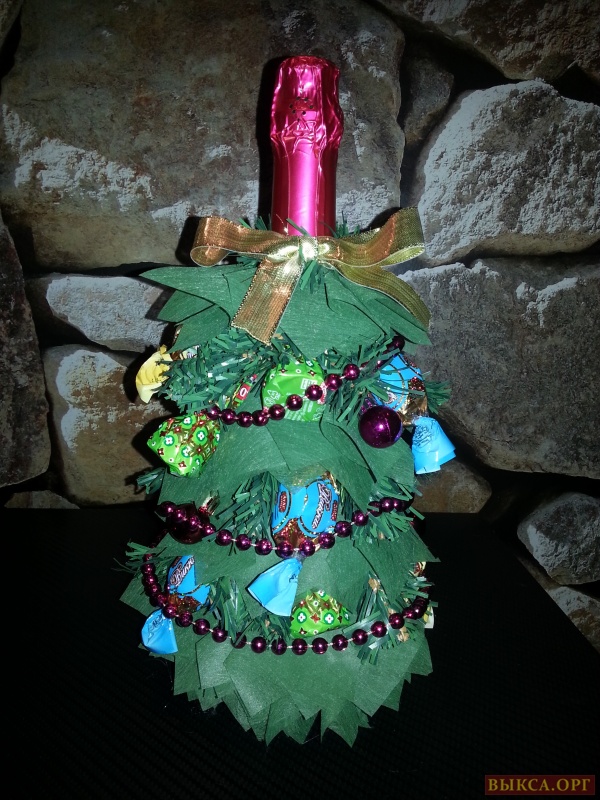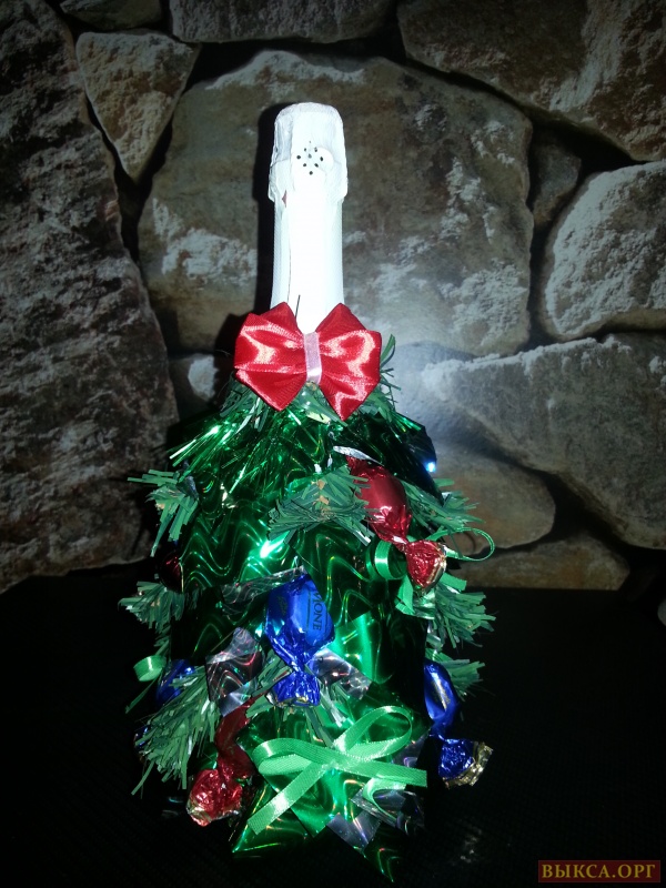 Подарки к Новому Году: шампанское ёлочка с конфетами. Цена 500 руб.