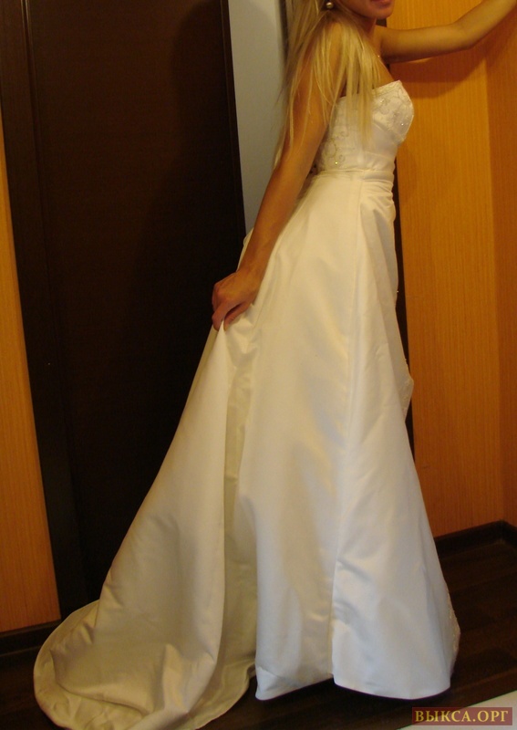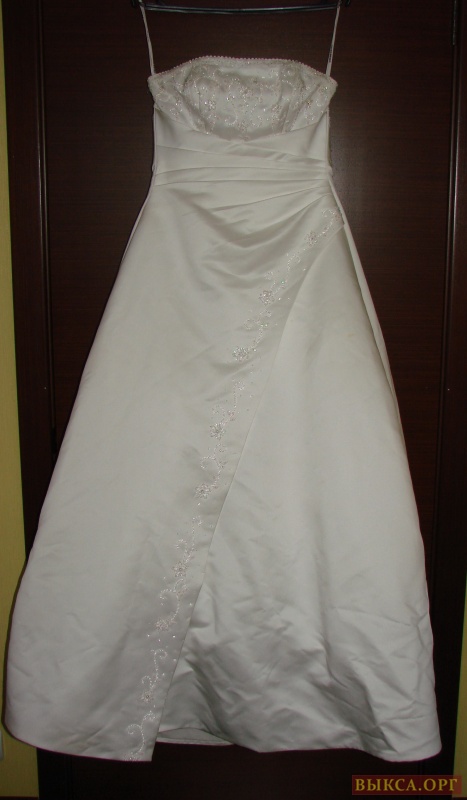 Очень изысканное, цвета - нежный айвори. Размер 44-46, рост от 165. Атласное (А-силуэт), ручная вышивка на корсете, подоле, расшито бисером, искусственным жемчугом. Корсет на шнуровке. В отличном состоянии (одето один раз, после химчистки). Не венчанное. Возможен торг.