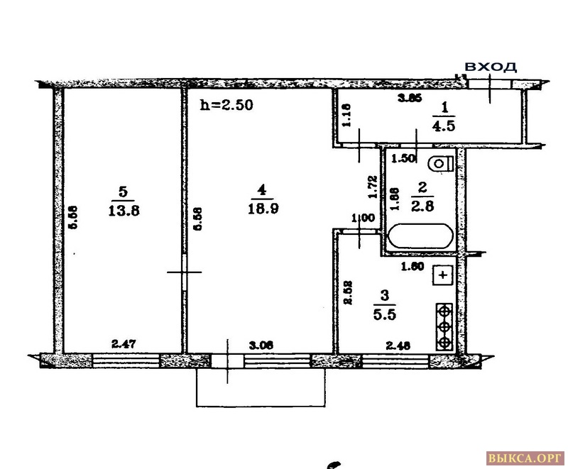 3/5эт.панельного дома, общ.пл.43 кв.м.
