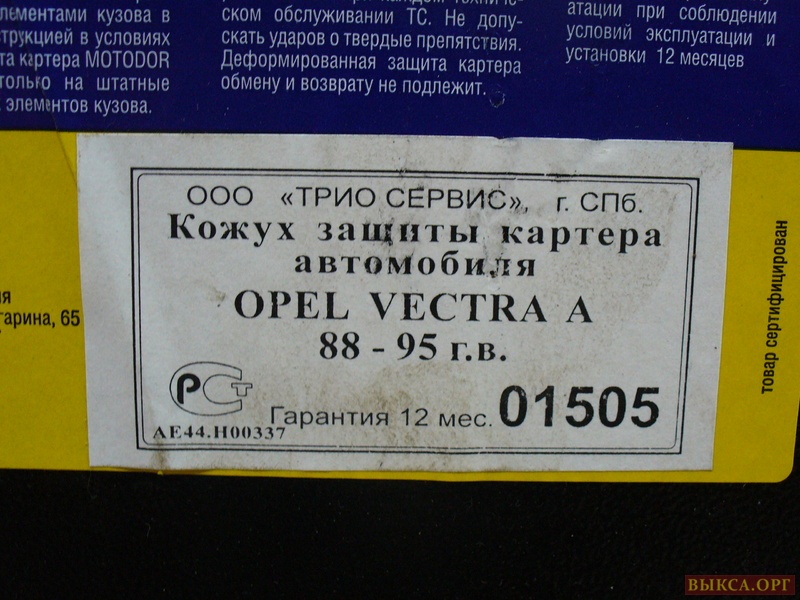 Защита картера OPEL Vectra A 1988-95гг. TRIO сталь 2мм, с крепежом. Новая.