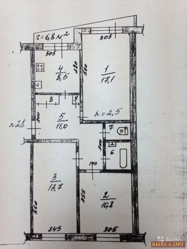 Комнат: 3, Тип дома: Панельный, Площадь (м²): 67.00, Этаж: 5, Всего этажей: 5
