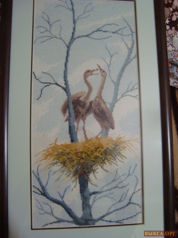 Вышивка ручной работы. Размер 32x55. Аисты. В реале НАМНОГО красивее.