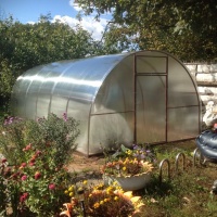 Теплица полукруглая, каркас из профиля 40*20мм и 20*20мм, толщина металла 2мм, 1 дверь шириной 98 см, штыри в землю по всему периметру теплицы. Дополнительная дверь 2000 руб, форточка 1000 руб.