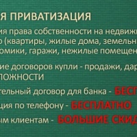 Помогу привести в порядок документы на ваши квартиры, дома, земельные участки, гаражи, садовые домики, помещения, здания и сооружения. Обращайтесь, если вам нужно узаконить перепланировку в квартире или пристрой в доме, если настало время законно распорядиться материнским капиталом, если вы собрались брать ипотеку и вам нужно грамотно и быстро составить договор купли-продажи или приобрести недвижимость за наличные деньги (предварительный договор для банка и соглашение о задатке составлю бесплатно), если решили подарить свою недвижимость, если появился хороший вариант обмена, если некогда оформлять оставленное вам наследство, если не успеваете приватизировать свои квартиры и комнаты и по многим другим вопросам, касающимся недвижимости. Звоните и приятно удивитесь низким ценам за услуги и грамотному подходу именно к вашей ситуации. Самые низкие цены в городе.