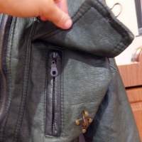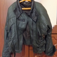 Куртка ТЁМНО-зелёного цвета с черным воротником и черными вставками. Из натуральной кожи, изготовитель Maskin&Co. Есть 2,5 кармана(2 больших и 1 маленький) размер 44. Куртка в хорошем состоянии, одевала всего несколько раз. Причина продажи-в данный момент мой размер не соответствует размеру куртки:-) Возможен небольшой торг