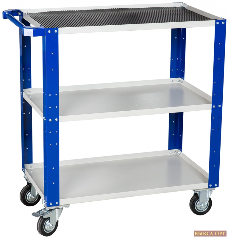 Тележка инструментальная WDS-0 открытого типа. Нагрузка на нижнюю полку - 40кг; на 2 верхние - 30кг. Верхняя полка с маслостойким ковриком. Поставляются в собранном виде. Разные комплектации тележек для инструмента. Тележка с полками, с ящиками для инструмента. Изготовлены из высокопрочной стали. Производство: (Россия) Всегда в наличии на складе.
