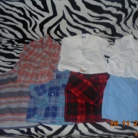 Продаю 5 мужских (3 флисовых,две потоньше потоньше) рубашек детских размера М(128-134 на русский),2 нарядных белых рубашки на размер Lи 3 футболки размера М.Все чистое,не рваное,не грязное.Вообщем в отличном состоянии.Цена 1000руб за 10 вещей
