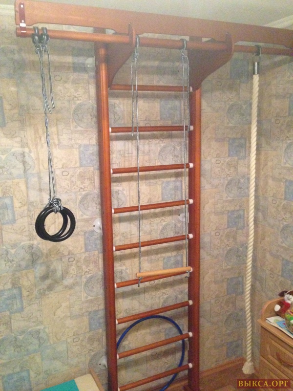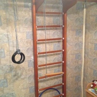 Продам шведскую стенку(деревянную). Состояние идеальное. Крепится к стене. Максимальное количество снарядов - турник, канат, кольца и т.д.