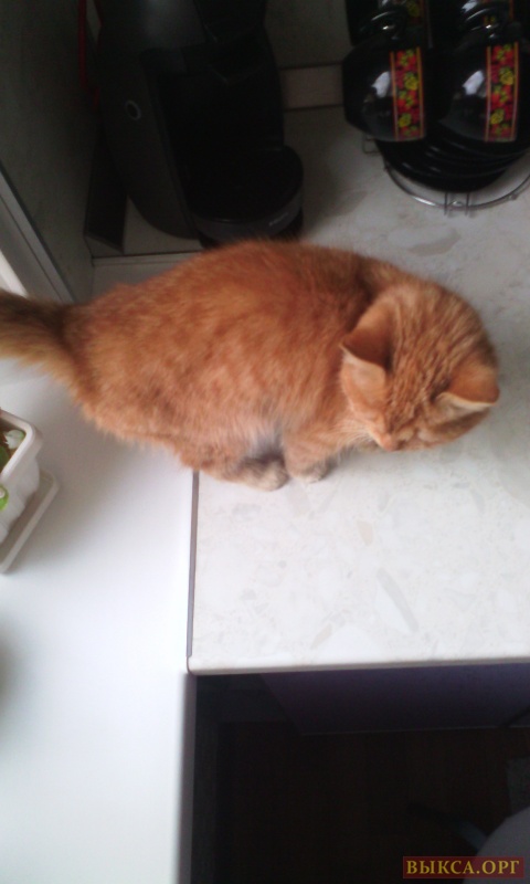 Нашли котенка ярко-рыжего цвета.Себе оставить не можем.Очень ласковый,к латку приучен,ест все.