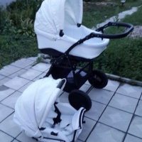 Очень красивая и удобная коляска. Материал кожа.Очень легко моется.Легко транспортируется.Состояние новое.(покупали за 25т.р.)