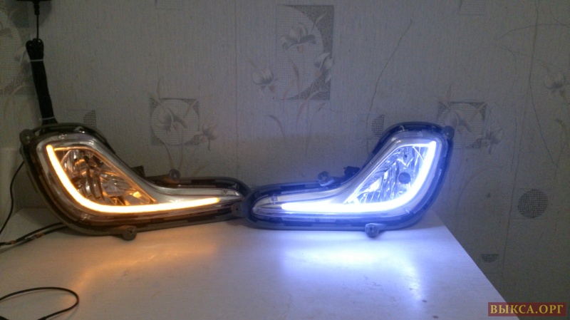 Противотуманные фары со встроенными дневными ходовыми и сигналами поворота Хёндай Солярис (до 2014 года, до рестайлинга).