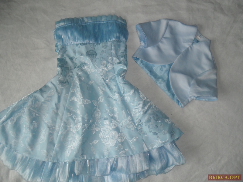 Красивое голубое вечернее платье сзади на шнуровке, с болеро