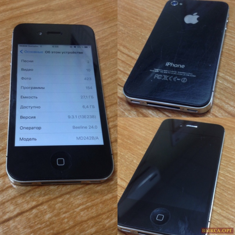 В комплекте коробка с инструкцией, наклейками, скрепка, наушники и конечно же зарядник (евро вилка). Кто знает, тот поймет потрепанный кабель. Все характеристики писать бессмысленно, все это есть в интернете. Телефон чистый, стоит IOS 9.3.1 без jailbreak. На передней и задней панели пленки, реальному покупателю сниму, дабы убедиться в целостности телефона. В придачу отдам аккумулятор (покупал на замену родного) и пленки. На фото телефон в пленках, все потертости на них. Более подробная информация по телефону.