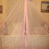 В комплекте: мягкая сьемная защитная стенка, подвесная люлька с москитной сеткой, балдахин, бортики, матрац. Возможен небольшой торг.
