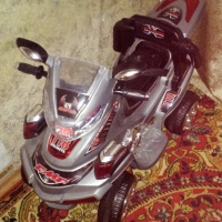 Продам детский квадроцикл, в идеальном состоянии. На аккумуляторе, есть пульт управления, заряжается от сети. Ребёнок может самостоятельно передвигаться на нём с помощью кнопки передней и задней передачи, а также можно управлять с пульта. Есть 3 мелодии, мигающая фара, ремень безопасности, маленький багажник.