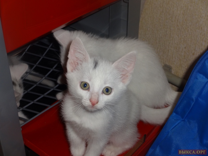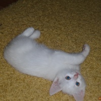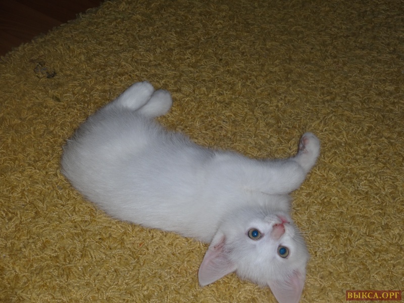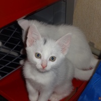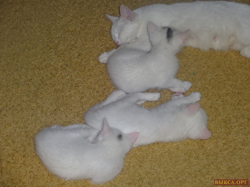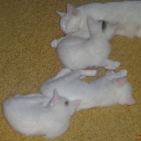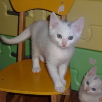 Отдам в добрые руки белых котиков. Возраст два месяца, кушают все , к лотку приучены. Один чисто белый, два с темными пятнышками на голове.