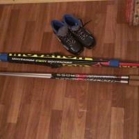 Продам комплект: лыжи, палки, ботинки. Состояние - отличное. Пользовались одну зиму на уроке физкультуры. Ребенок подрос. Примерный возраст : с 3-го по 5-ый класс. Ботинки 36 размер. Покупали за 3300 .