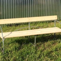 Лавочка со спинкой- каркас из оцинкованной и грунтованной трубы 40х20 мм, и 20х20 мм, обрезной доски (без покрытия). 1,90х0,64х0,65.