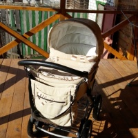 Большая комфортная люлька в которой можно регулировать наклон подголовника.Люльку можно использовать как качалку. Ручки для переноски люльки длинные, надежно зафиксированы на пластиковом основании люльки. Снимать люльку с шасси удобно. По бокам удобные ручки. В комплекте коляски есть трехточечные ремни безопасности для перевозки ребенка в машине. Ручка легко регулируется по высоте. В подарок отдам новую москитную сетку, новый дождевик и чехлы на колеса