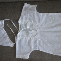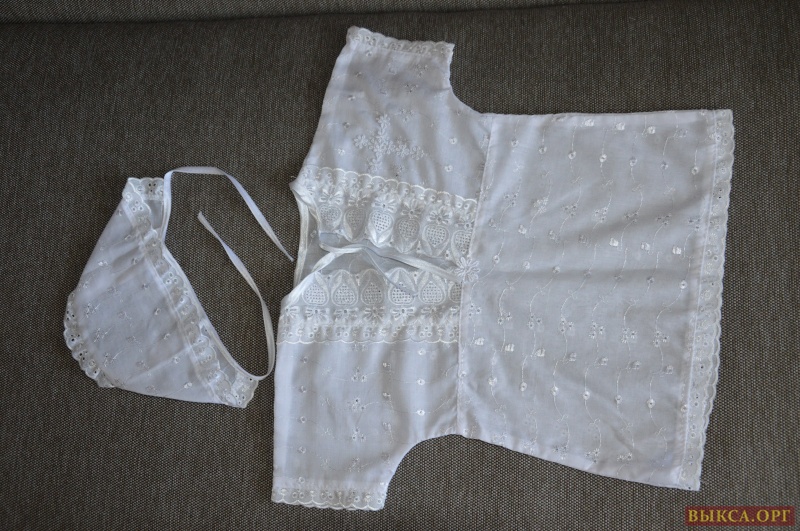 6 ФОТО: Крестильный набор. Длина рубашки 38 см, ширина от и до края рукавов 46см. Набор новый, купили в церковной лавке, оказался мал. Цена 100 рублей.