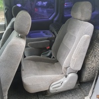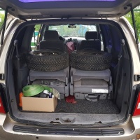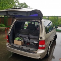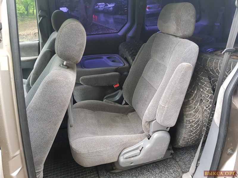 Проблемы по кузову имеются, на фото видно. 6 сидений (на третьем ряду свободно помещается 3 человека, итого 7 мест). Средние и задние сидения вынимаются легко, без них получается фургон с ровным полом, 2,3 м длиной. Средние и задние стекла тонированы.