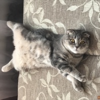 Отдам кошку шатландской породы в добрые руки(у ребёнка аллергия),лоток, миски, наполнитель и корм на первое время.