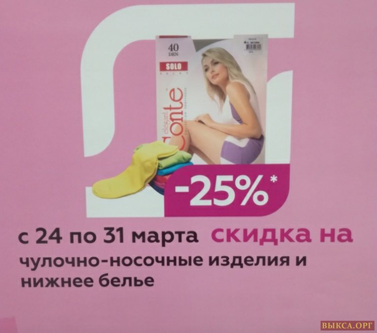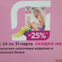 Только в Магнит Косметик скидка 25 % на чулочно-носочные изделия и нижнее бельё