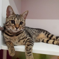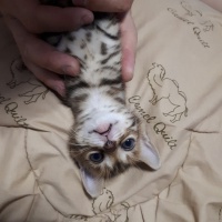 Девочка родилась 16 апреля. К лотку приучена.Кушает все. Очень умная и активная бенгалочка. К ней очень быстро привыкаешь) в живую она конечно лучше. Ждем новых хозяев) все вопросы в личку. На 4-6 фото это ее мама.самое последнее фото это- папа.