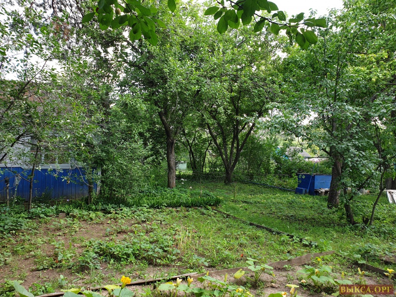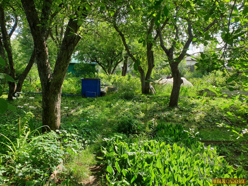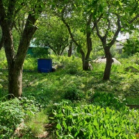 Обработанный участок в садовом товариществе "Мир" (центр города). На участке растут плодовые деревья (яблони, груша, вишни, сливы), кусты смородины, крыжовника, а также калина, малина, лимонник и т.д.