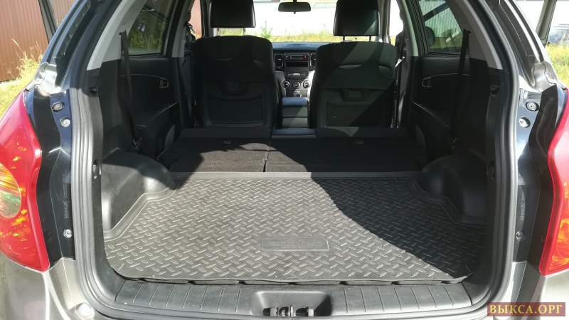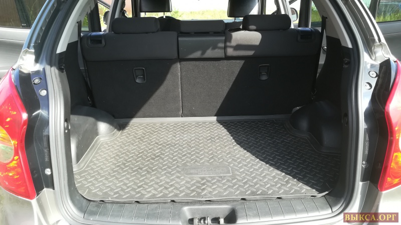 Спинка заднего сиденья имеет три угла наклона и складывается в ровный пол (есть на фото). Водительское сиденье имеет регулируемый поясничный подпор (очень помогает при дальней дороге). Хорошая звукоизоляция салона. Установлена сигнализация с автозапуском. Установлена отличная шестиступенчатая коробка автомат такая же как на ix35.