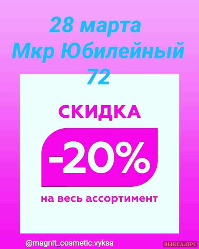 Только 28 марта скидка 20% на ВСЕ товары только в Магнит Косметик